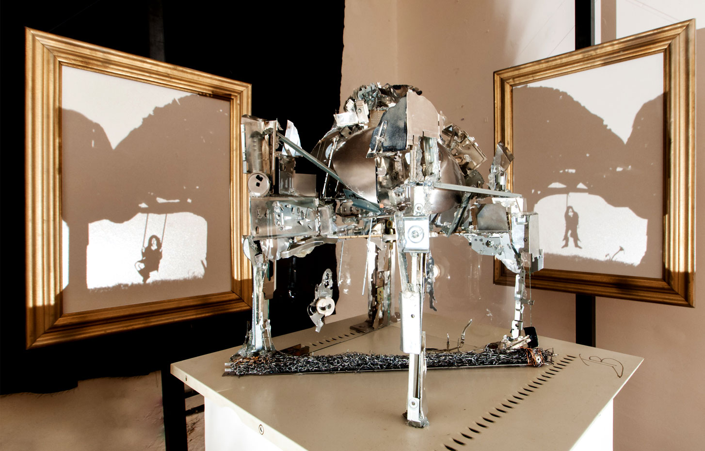 Το έργο φανερώνει τη σκιά ενός ανθρώπου που κάνει κούνια, αλλά κι έναν κρεμασμένο. Για να δει κανείς τη δεύτερη σκιά πρέπει να περιστρέψει το γλυπτό κατά 90 μοίρες. (για να διαβάσετε περισσότερα κάντε κλικ στην εικόνα)